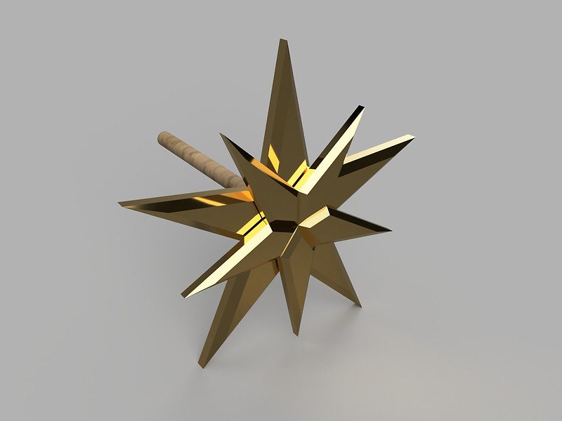 I did something else, too. I built a zimbelstern for the organ. A zimbelstern uses a rotating mechanism to sound a number of bells in succession when activated. The Carthage College organ has one. I included a historically accurate rotating star fixed to a shaft that extended out to the front of the organ case. My star was actually two stars, one large and the other smaller, superimposed on one another. I don't have a photo of the zimbelstern I built, so I modeled the star from memory in Autodesk Fusion. Associated mainly with the North German baroque organ, the zimbelstern I made set the Roncalli organ apart and really engaged the student population with its exceptional sound. It made that organ distinct and, in addition, provided a historical context.